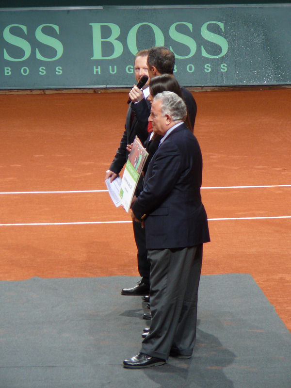 Der Herr zu vorderst auf Bild 4 ist Francesco Ricci Bitti. Er ist Präsident der ITF, der internationalen Tennisföderation. In diesem Amt ist er an Davis Cup-Wochenenden natürlich immer bei einer Begegnung anzutreffen. Dass seine Wahl auf Schweiz-USA fiel zeigt, dass dies die Begegnung des Wochenendes gewesen war.