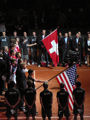Abgesehen von einem Doppelmatch der Kontinentalzone hatte ich noch keine Davis Cup-Partie der Schweiz gesehen. Ich konnte mich nicht voll dafür begeistern, da sich auch Federer nicht voll dafür begeisterte. An diesem Wochenende war er sogar der einzige aus den Top 5 der Weltrangliste, der zum Davis Cup antrat. Djokovic, Nadal, Murray und Ferrer konnten sich das allerdings erlauben, da ihre Teams trotz ihres Fehlens siegreich waren. Gegen die USA was jetzt also alles anders. So eine Affiche will ich nicht verpassen. Vor dem Spiel wurde das Schweizer Davis Cup-Team von 1992 präsentiert. Angeführt von Rosset und Hlasek, den Nummern 35 und 36 der Weltrangliste, spielte die Schweiz damals in ihrem bisher einzigen Davis Cup-Finale und trat in Fort Worth (Texas) gegen die Nummern 1, 3, 9 und 20 der Weltrangliste, nämlich Courier, Sampras, Agassi und McEnroe an. Mit Chang und Lendl hatten die USA zu diesen Zeitpunkt noch zwei weitere Spieler in den Top 10. Die USA siegten nach harter Gegenwehr mit 3:1. Die Nationalhymnen wurden ohne Gesang mit einem Alphorn und einer elektrischen Gitarre inszeniert. Eine durchaus riskante, aber gelungene Darbietung. Zusammen mit den Fahnenschwingern wurde so die Marke Schweiz medienwirksam in die Welt hinausgetragen.