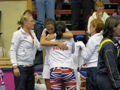 Auf Bild 8 sind die Schwedinnen im Gespräch mit Sandra Roma in der roten Jacke, die letztes Jahr noch zum Team gehört hatte. Bei den beiden Spielerinnen auf Bild 3 handelt es sich nicht um Fluglotsen, sondern es wird das Y des Village People Songs YMCA dargestellt. Bei den Seitenwechseln gab es übrigens nur zwei Personen, die zu jeder Musik mitsangen. Als erste Person bin ich auf der einen Seite gesetzt. Als zweite Person war es auf der anderen Seite des Platzes Laura Robson. Sie war auch die einzige Britin, die die Hymne mitgesungen hatte.
