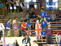 Die kleine Delegation britischer Fans dominierte die Stimmung in der Borashallen. Durchwegs stimmen sie vom Ende eines Punktes bis zum Beginn des Nächsten jeweils immer einen Schlachtruf an. Sehr laut und penetrant, aber fair und unglaublich amüsant wie ich fand. Sie waren mit einem unterschiedlichen Fanshirt pro Spielerin ausgerüstet. Ich denke da hat der britische Verband seine Portokasse geöffnet. Ihr eingängigster Spruch im ersten Match war "Say uh ah Baltacha, say uh ah Baltacha."