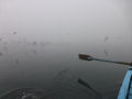 Teepause auf dem Programm. Auf dem von dichtem Nebel bedeckten Fluss herrschte