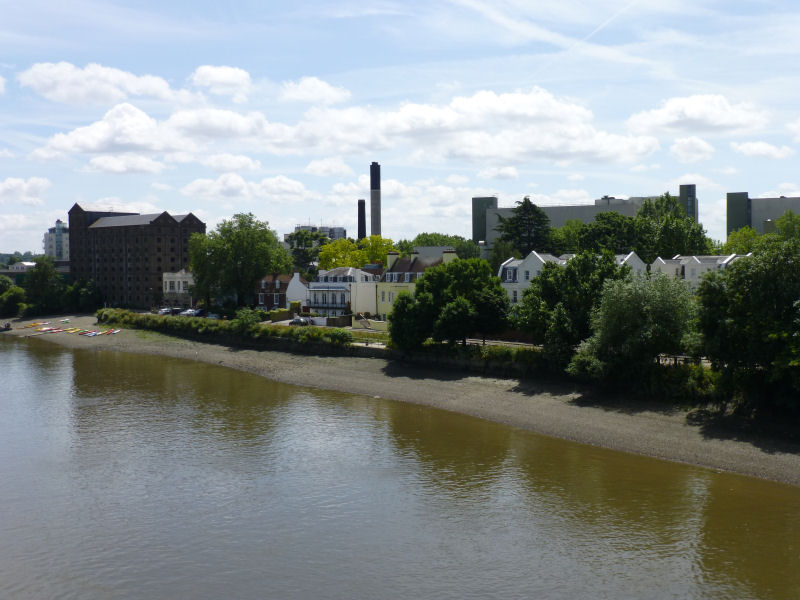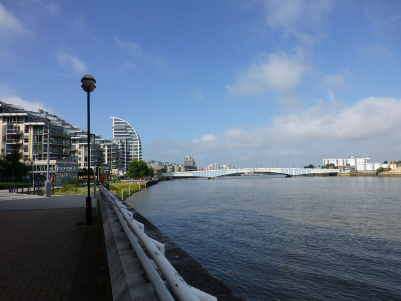 Westen Londons entlang. Auf der Wandsworth Bridge baten mich drei Fahrradfahrer,
