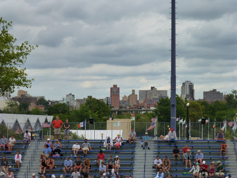 Blickwinkeln des Louis Armstrong Stadium anzusehen. Ein bisschen Tsonga und ein
