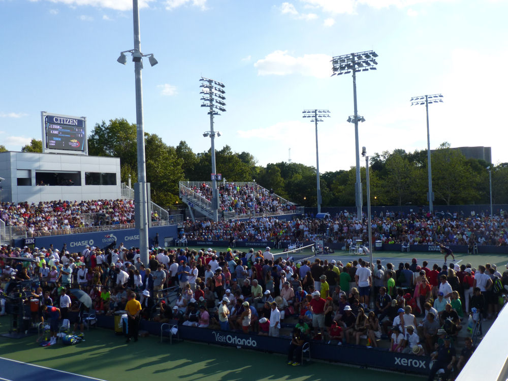 Uhr - um meinem Rückflug zu erwischen - komplett im Louis Armstrong Stadium. Die