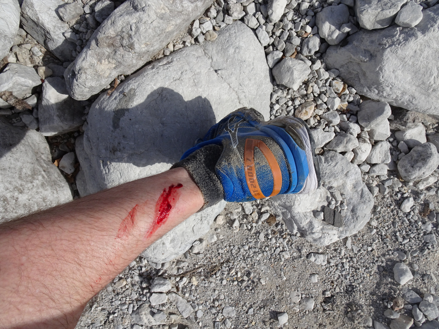 verursachte einen Steinschlag, der direkt über meinem rechten Unterschenkel