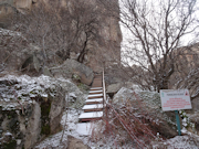 ein steiler Abstieg über viele Treppenstufen in den Canyon.