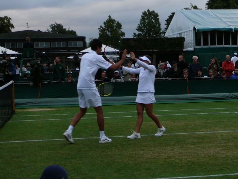 Völlig überraschend stand Tamira Paszek am Mittwoch der zweiten Woche nochmals auf dem Platz. Zusammen mit Marcelo Melo rutschte sie auf einen kurzfristig freigewordenen Platz in der Mixed-Konkurrenz nach. Für die Veranstalter ist es erstens wichtig, dass die Spieler immer noch vor Ort sind. Daneben soll dem Publikum im Mixed aber auch etwas geboten werden. Mit der 4. Runde im Einzel sowie dem Marathonmatch im Doppel erfüllten Paszek/Melo diese Bedingungen natürlich. Die Beiden kennen sich sicherlich insofern, als dass Guga Kuerten beim Doppel der Brasilianer zugegen war und der ehemalige dreifache French Open-Champion mit Larry Passos den selben Trainer wie Tamira Paszek hat. Aussergewöhnlich war, dass beim gegnerischen Team mit Michaella Krajicek jeweils die Frau als Erste aufschlug, was im Mixed Doppel kaum zu sehen ist. Die 18-jährige Niederländerin hat aber einen starken Aufschlag. Da hat sie mit ihrem Halbbruder, dem ehemaligen Wimbledon-Sieger Richard Krajicek, auch ein aufschlaggewaltiges Vorbild. Einmal gelang ihr sogar ein Ass gegen Melo. Und in der Damenkonkurrenz führt sie die Ass-Statistik dank 45 Assen in 5 Matches an. Allerdings steht sie bei den Statistiken auch mit 22 Doppelfehlern ganz weit oben. Martin Damm wartete nach Krajiceks Aufschlag beinahe in der Netzmitte, um die Returns der Gegner zu verwerten. Der Tscheche Damm und Krajicek unterhielten sich auf tschechisch. Aufgrund des Nachnamens der Niederländerin war zu vermuten gewesen, dass auch sie irgendwo her tschechische Vorfahren hat. Zu Beginn (ich stiess zum Ende des ersten Satzes zur Partie) glich Michaella Krajicek eher einem Häufchen Elend, wenn ich das so salopp ausdrücken darf. Sie hatte nur kurz zuvor ihre Viertelfinale-Partie gegen Marion Bartoli verloren. Zuvor war sie an einem Grand Slam-Turnier noch nie über die dritte Runde hinausgekommen. Nun hatte sie gerade eine mögliche Halbfinalqualifikation trotz gewonnenem Startsatz verpasst. Das schwirrte weiter in ihrem Kopf herum. Im Verlaufe des Matches fing sie sich aber weitgehend auf. Für Damen ist das Mixed Doppel immer