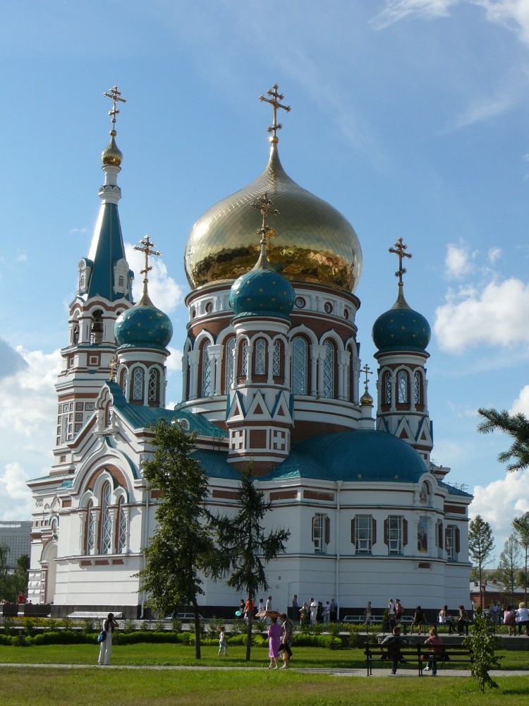 Kathedrale: Da war ich keinen Sommer zu früh in Omsk. Denn sie die neu erbaute Kathedrale war erst im Juni 2007 fertiggestellt worden. Auch sie war ein Opfer des Sowjetregimes gewesen. Dort galt die Kirche als Opium fürs Volk. Ich würde sagen, dass ist meine Nummer 2 nach der Basilius-Kathedrale.