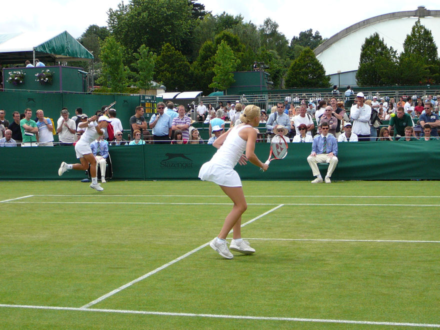 Doppelfähigkeiten, indem sie Serve & Volley spielte und beim Aufschlag ihrer