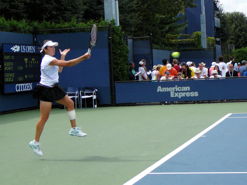 Mit dem ersten Aufschlag kann Vögele gute Impulse setzen. Das ist ein wichtiger Bestandteil ihres Spiel. Ich war allerdings überrascht, dass die Statistik für dieses Match nur eine 1. Aufschlagquote von 41% zeigt. Die zweiten Aufschläge der Gegnerin greift die Aargauerin konsequent an. Das gefällt mir sehr gut. Brianti spielte oft Top Spin-Bälle, die hoch wegspringen. Das macht es für die Gegnerin schwer, aggressiv zu spielen und die Bälle früh zu nehmen. Verglichen mit Schiavone im nächsten Match waren Briantis Top Spins allerdings nur die Light-Version.